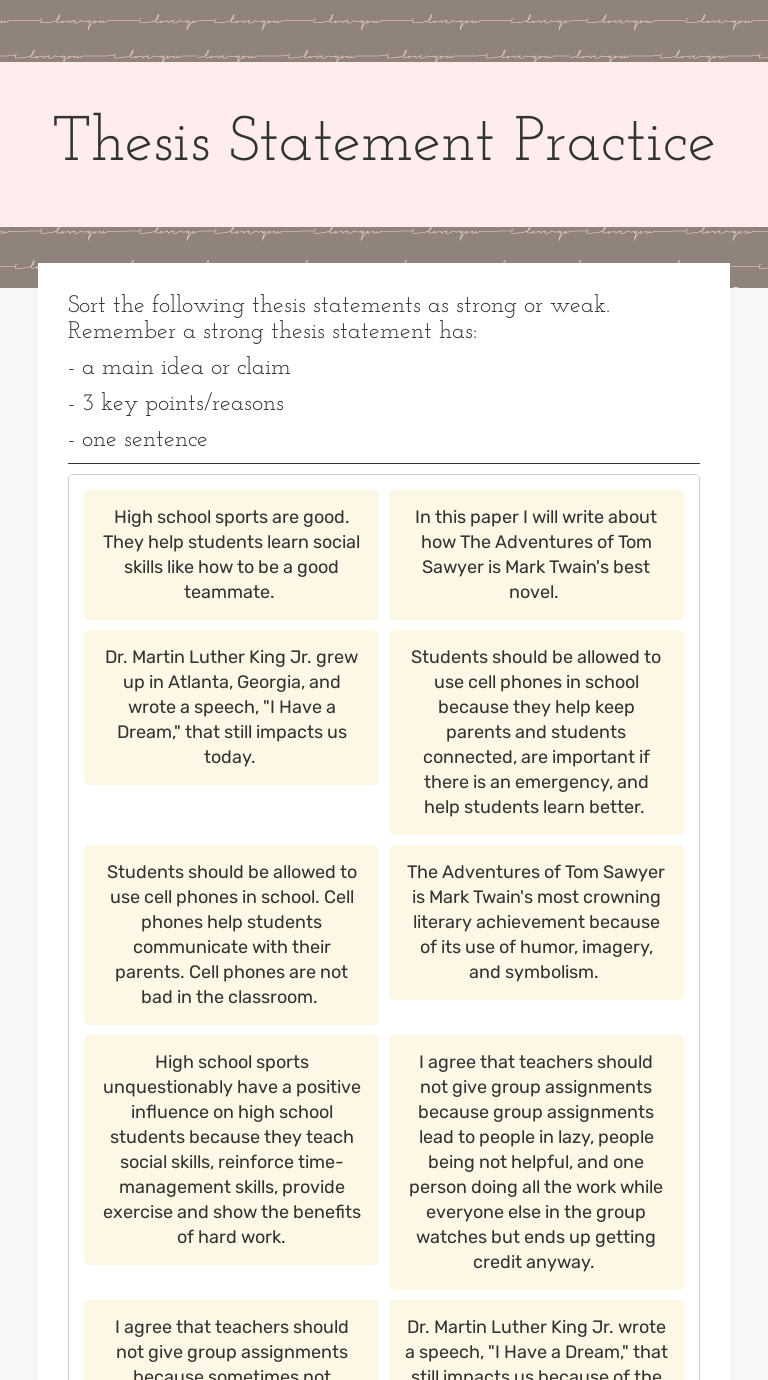 Learn how to write an effective thesis statement with these tips and examples. In a business setting, a directional statement, also referred to as a vision statement, describes how your business will appear after achieving all of its strategic goals. Statements will vary depending on what kind of taxes you have to handle on behalf of your employees, but the same basic information has to be included on most pa. In the concept statement, make the benefits to the project absolutely clear and provide answers. A statement of work is a linchpin of any project, but writing one is tricky. You've spent years preparing for your master's degree or phd. Financial statement analysis reviews are used to support investment decisions and valuation analyses. Statements will vary depending on what kind of taxes you have to handle on behalf of your employees, but the same basic information has to be included on most pa. There are plenty of compell. You've read, studied and spent hours of time and energy writing papers. Writing a project statement is essential to getting a venture off the ground. A personal statement is an autobiographical essay that many colleges, universities, and professional schools require as part of the admissions process. Learn how to write an effective thesis statement with these tips and examples. A paid in full statement is a letter to your creditor that explains the details of the debt owed and how and when you will pay this amount. As straightforward as it sou. You may want to consider typing the letter so the. Otherwise, the proposal will not be approved. In the concept statement, make the benefits to the project absolutely clear and provide answers. Payment statements are an important part of handling payroll in your business. Adrian samson/getty images this exercise will help you understand the difference between an effective and ineffec. They're also included in annual reports to investors. Now you've arrived at the culmination of all this effort: Here's are some tips to help you get it right the first time. Management teams include a comprehensive discussion of financial results in their an. Payment statements are an important part of handling payroll in your business. A personal statement is an autobiographical essay that many colleges, universities, and professional schools require as part of the admissions process. You may want to consider typing the letter so the. A solid thesis statement will always be the heart of your essay. A personal statement is an autobiographical essay that many colleges, universities, and. A paid in full statement is a letter to your creditor that explains the details of the debt owed and how and when you will pay this amount. In a business setting, a directional statement, also referred to as a vision statement, describes how your business will appear after achieving all of its strategic goals. Otherwise, the proposal will not be approved. Financial statement analysis reviews are used to support investment decisions and valuation analyses. Writing a project statement is essential to getting a venture off the ground. In the concept statement, make the benefits to the project absolutely clear and provide answers. Pratt contributing writer, computerworld | statement of work. Payment statements are an important part of handling payroll in your business. In composition and academic writing, a thesis statement (or controlling idea) is a sentence in a. A personal statement is an autobiographical essay that many colleges, universities, and professional schools require as part of the admissions process. They're also included in annual reports to investors. You've spent years preparing for your master's degree or phd. A personal statement is an autobiographical essay that many colleges, universities, and professional schools require as part of the admissions process. Statements will vary depending on what kind of taxes you have to handle on behalf of your employees, but the same basic information has to be included on most pa. You've spent years preparing for your master's degree or phd. Otherwise, the proposal will not be approved. Financial statement analysis reviews are used to support investment decisions and valuation analyses. A personal statement is an autobiographical essay that many colleges, universities, and. A statement of work is a linchpin of any project, but writing one is tricky. There are plenty of compell. Pratt contributing writer, computerworld | statement of work. Management teams include a comprehensive discussion of financial results in their an. In a business setting, a directional statement, also referred to as a vision statement, describes how your business will appear after achieving all of its strategic goals. Payment statements are an important part of handling payroll in your business. In composition and academic writing, a thesis statement (or controlling idea) is a sentence in a. Writing A Thesis Statement Worksheet : Developing A Thesis Statement Worksheet Proofreadwebsites Web Fc2 Com /. Financial statement analysis reviews are used to support investment decisions and valuation analyses. Now you've arrived at the culmination of all this effort: A personal statement is an autobiographical essay that many colleges, universities, and. Project statements are handed out t. Writing a project statement is essential to getting a venture off the ground.